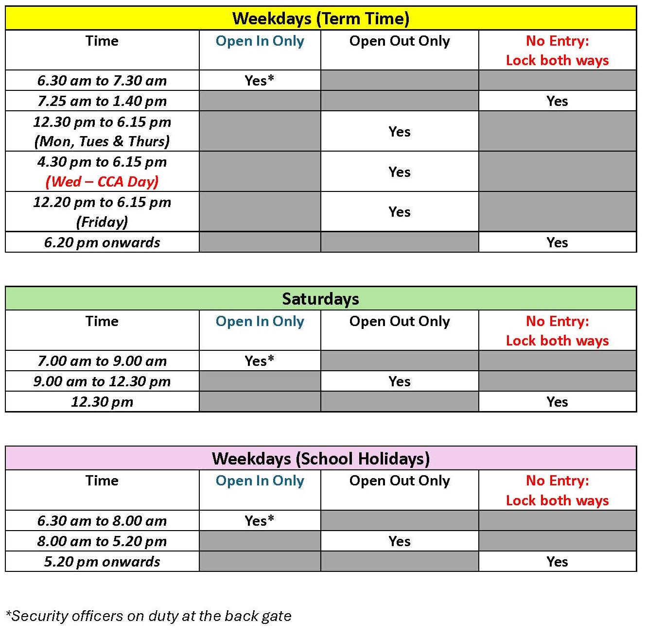 Parents are kindly requested to take note of these timings when making arrangements for the dismissal and collection of your child/ward.